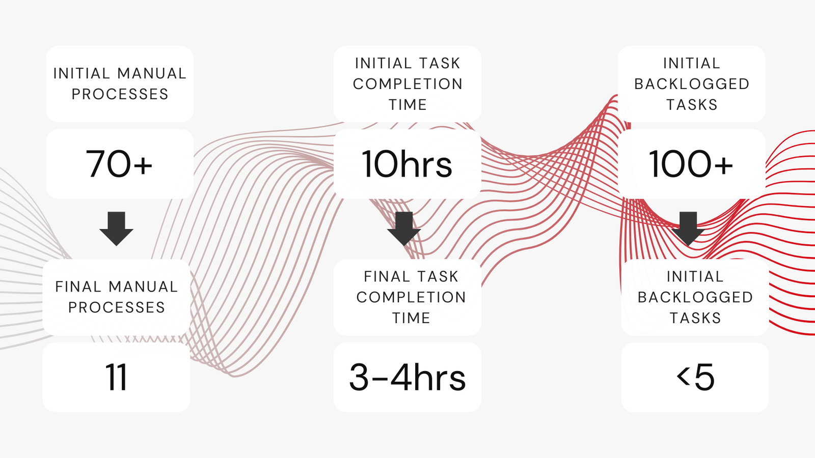 ◈ 50% reduction in task duration and resource strain, freeing up time for big‑idea thinking instead of spreadsheet babysitting.
